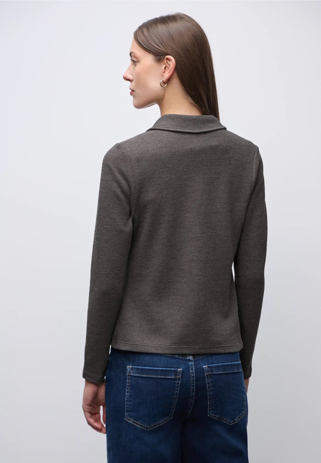 Denne basisblazer fra Street One til kvinder imponerer med klassisk elegance og exceptionel komfort. Reverskraven, den ensfarvede farve og den strækbare bomuldsblanding gør den til et alsidigt stykke tøj. Ideel til kontoret, fritiden eller et stilfuldt hverdagslook.