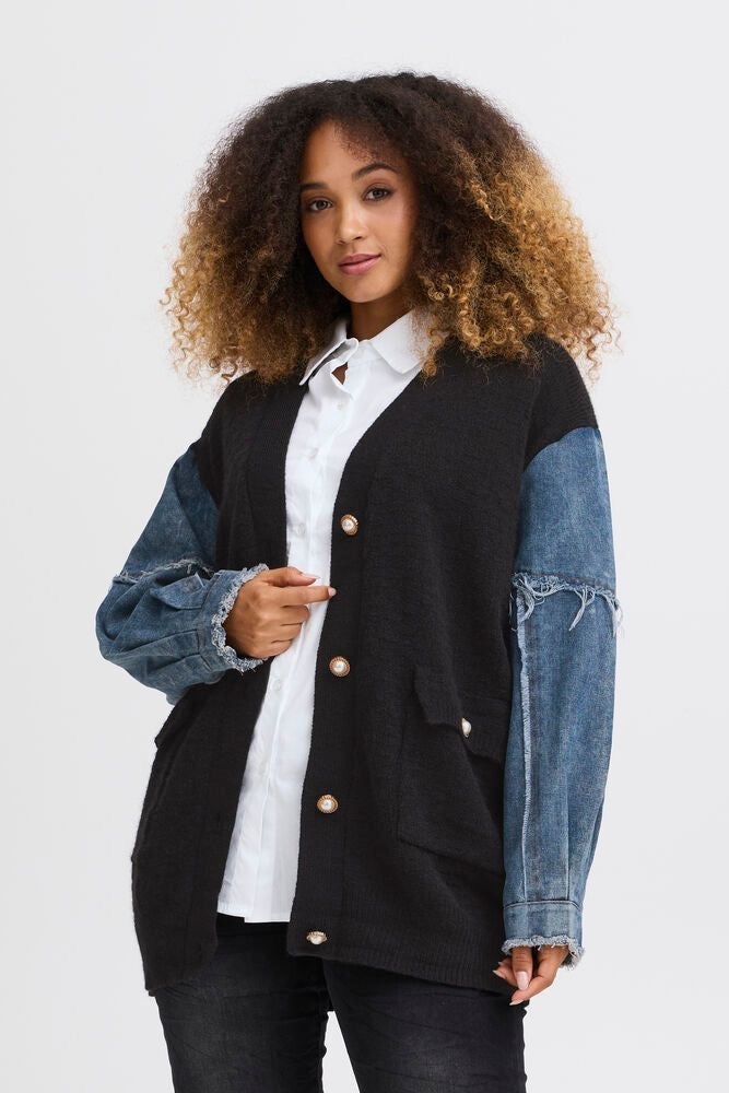 Såååå fin en strik jakke med de fedeste ærmer i Demin og masser af detaljer
