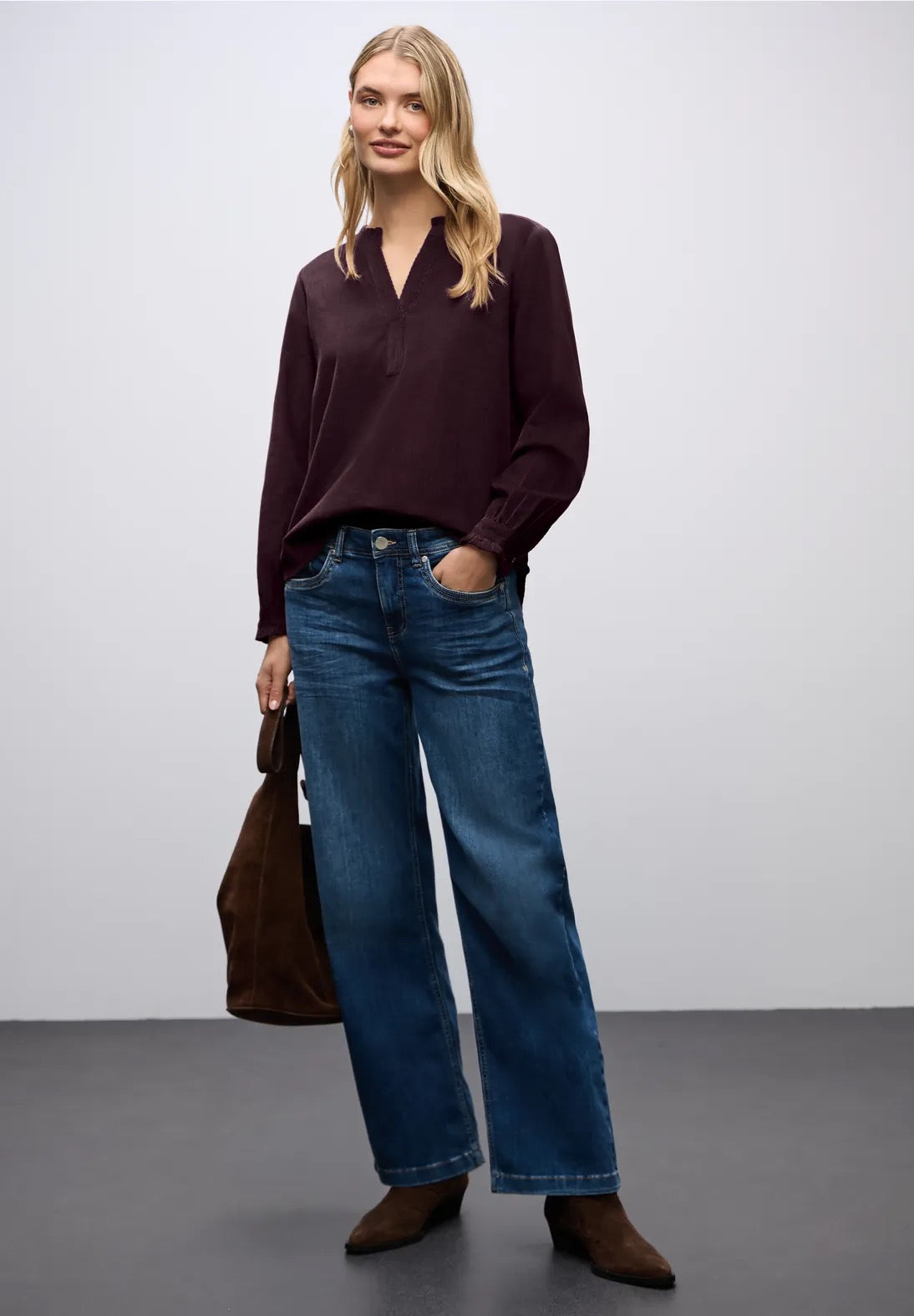 Denne damebluse i corduroy fra Street One har fine flæsedetaljer, der giver et feminint touch. Den slidte halsudskæring, de lange ærmer med manchetter og det højkvalitets corduroystof skaber et moderigtigt look med en hyggelig fornemmelse. Ideel til hverdagsbrug.