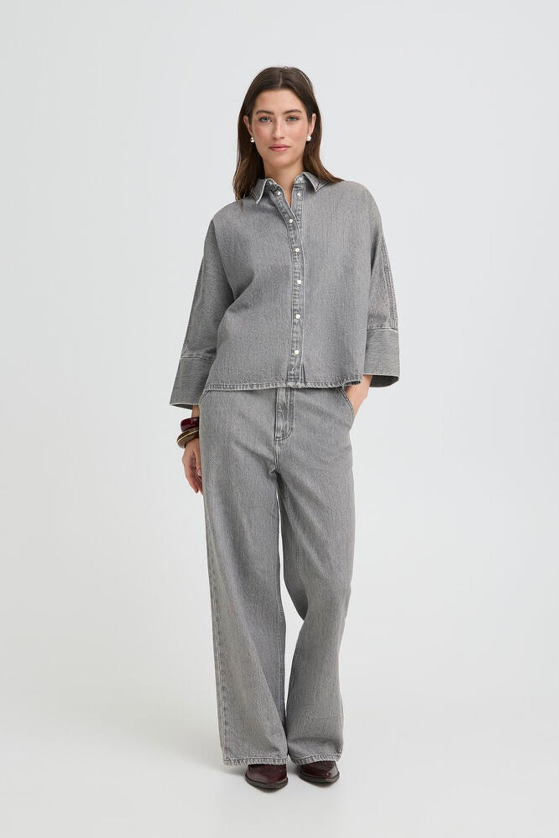 Skjorten har trykknapper ned og 3/4 lange ærmer, så du nemt kan bruge bluser under.