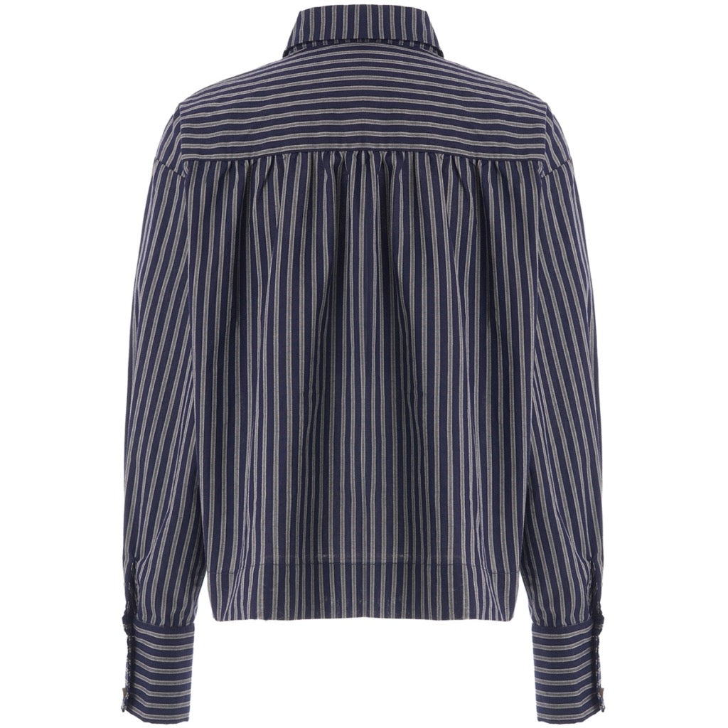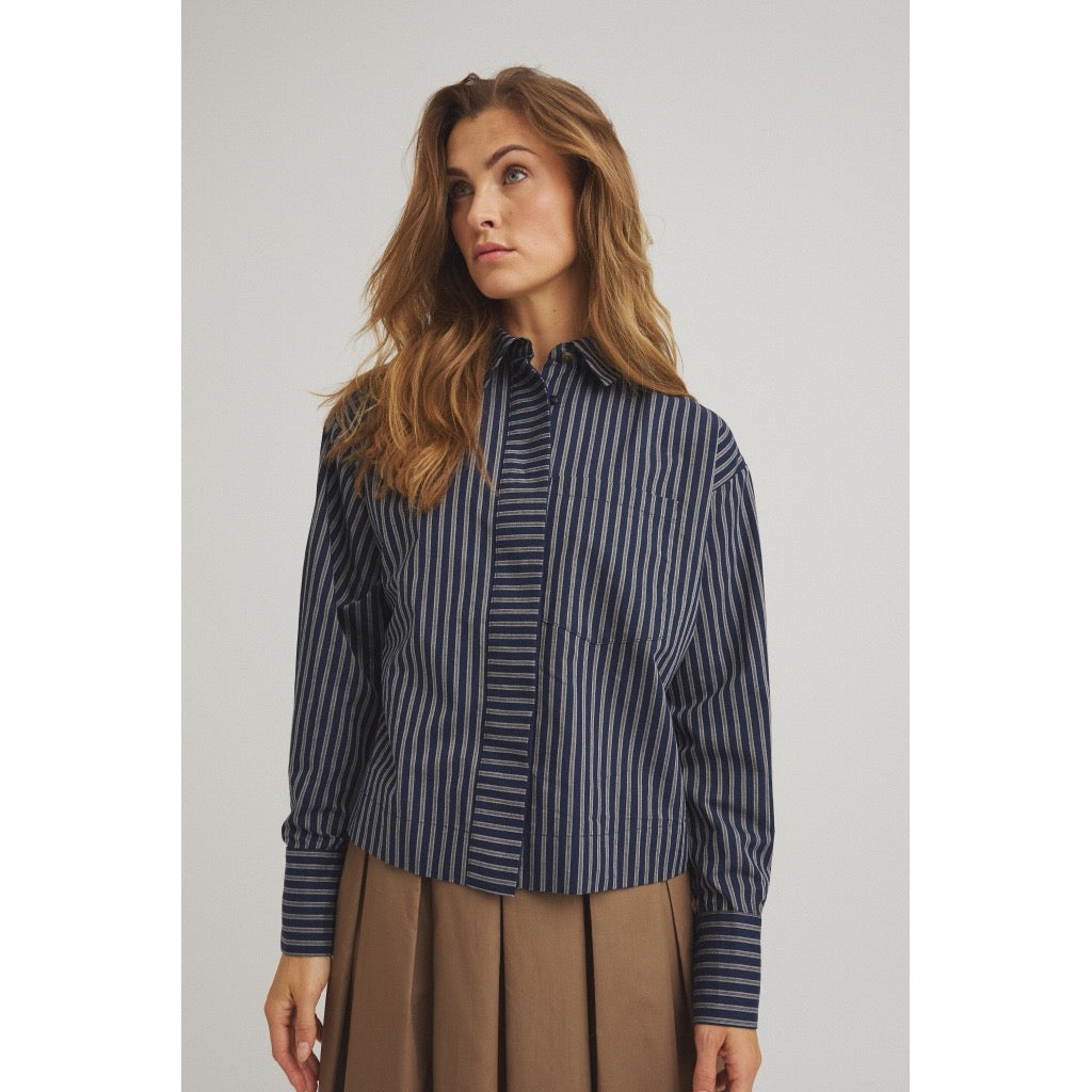 Flot stribet skjorte fra LUXZUZ // ONE TWO. Modellen er designet med klassisk krave, skjult knaplukning foran, en brystlomme i venstre side samt manchetter ved ærmerne. Skjorten har et feminint fit med let rynk bagpå, som giver et elegant fald. En stilren og tidløs skjorte med fokus på fine detaljer og et enkelt udtryk.