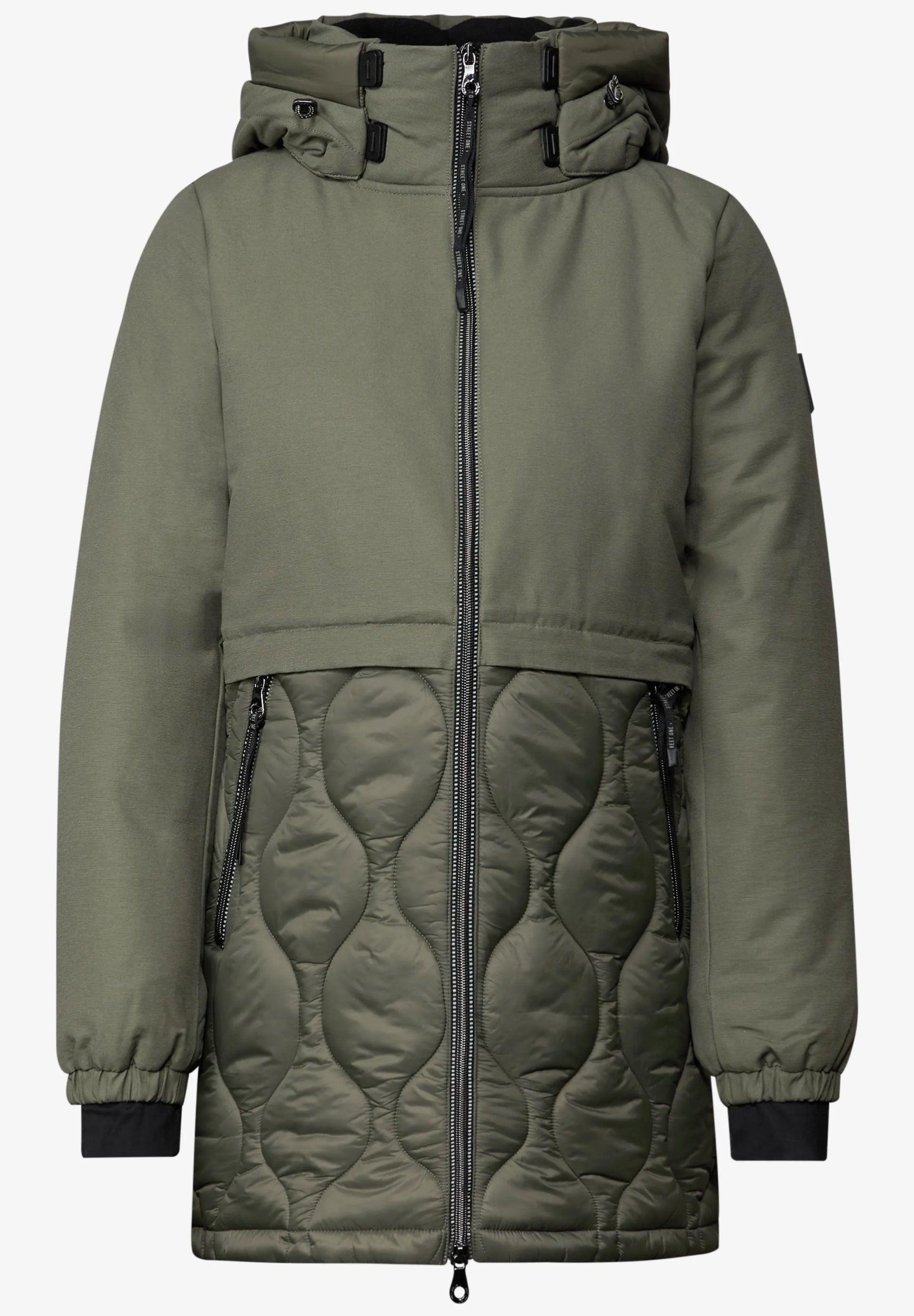 Denne Street One-jakke til kvinder i tekstureret mix kombinerer et softshell-stof på overdelen med et varmt, quiltet for. Hætten med snøre giver ekstra beskyttelse, mens lynlåslommer sikrer funktionalitet. En stilfuld overgangsjakke med spændende materialekontrast og exceptionel komfort.