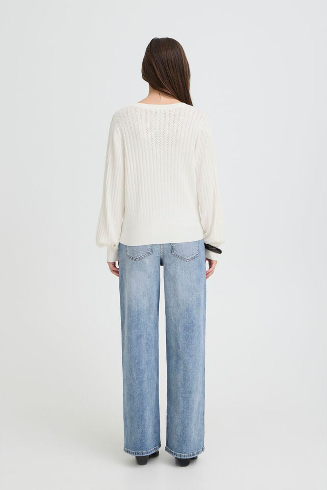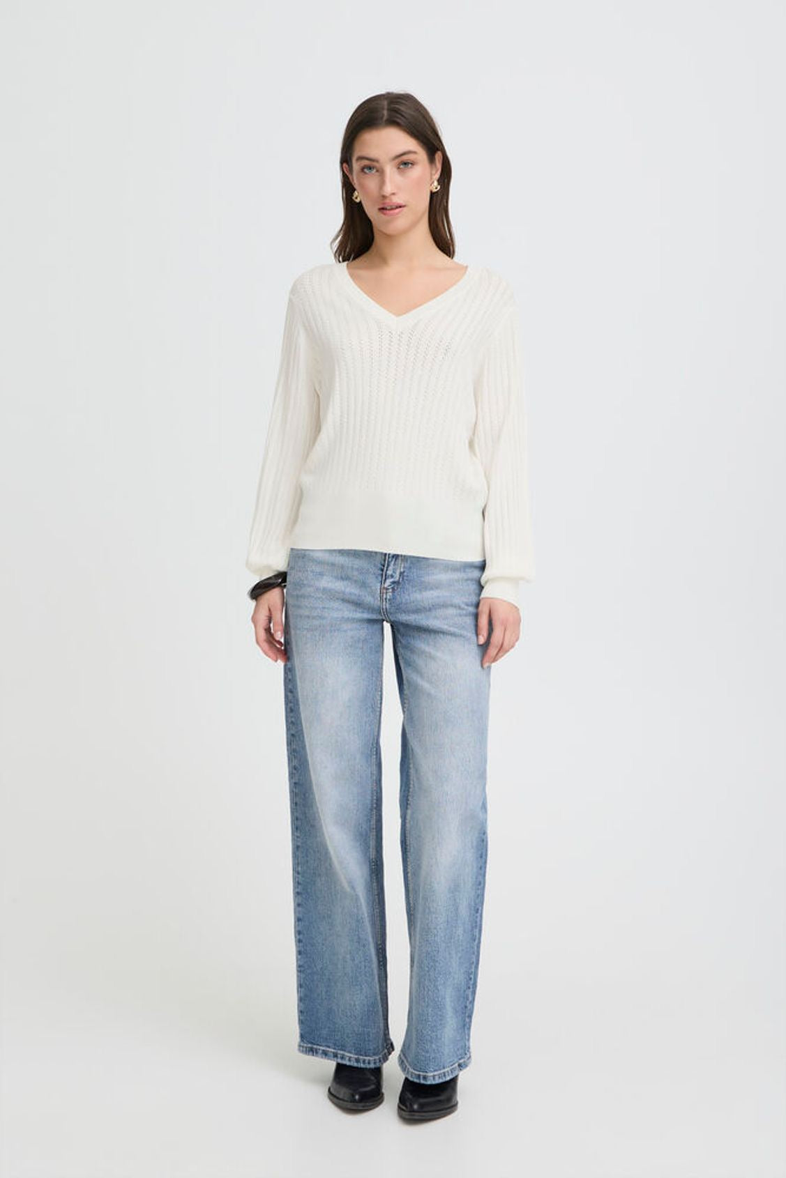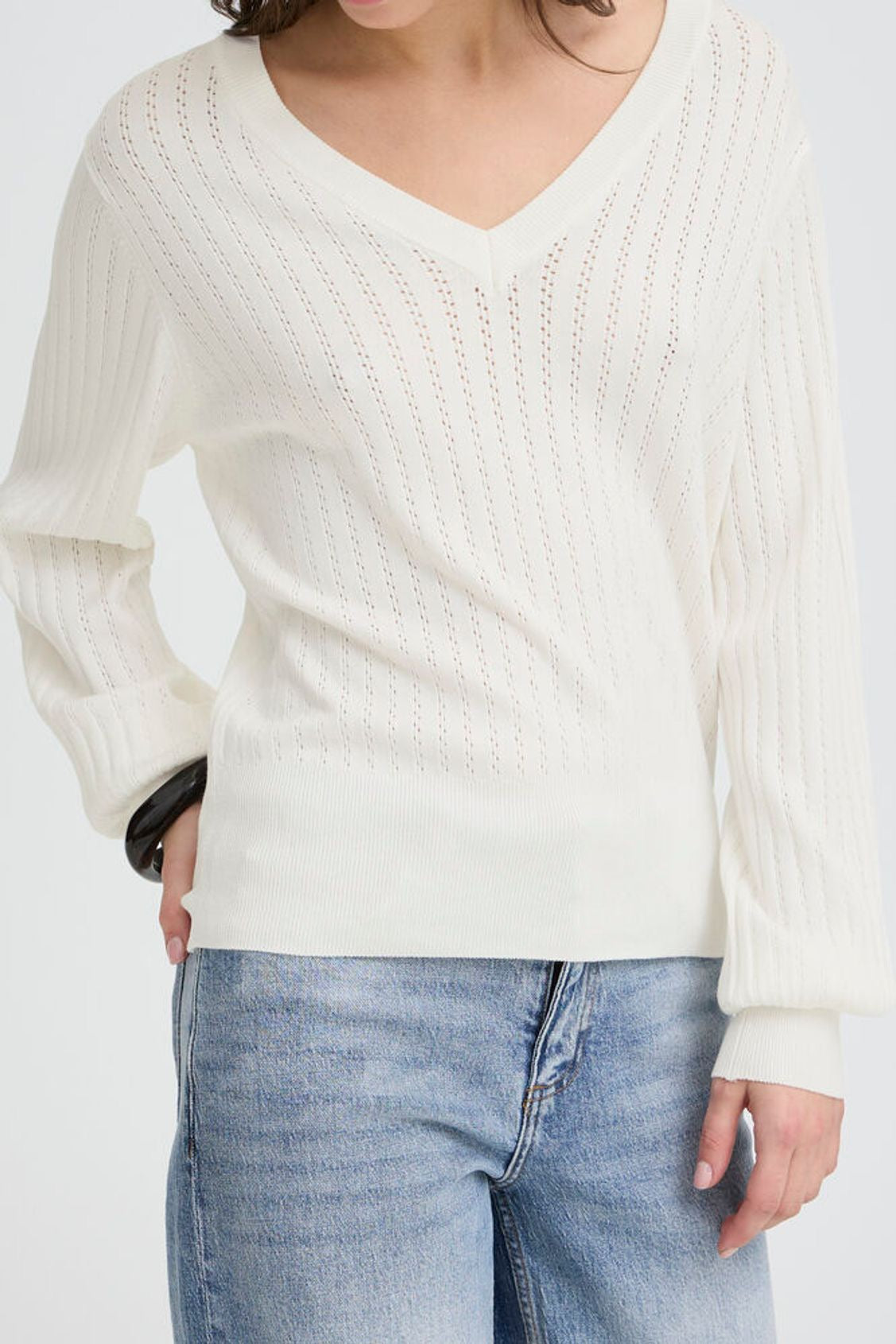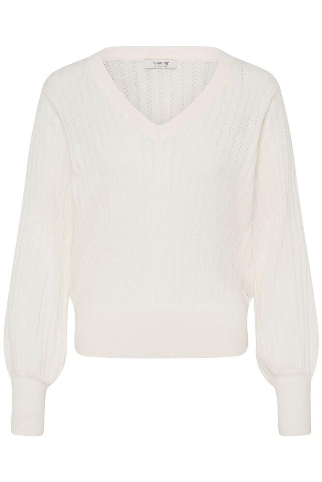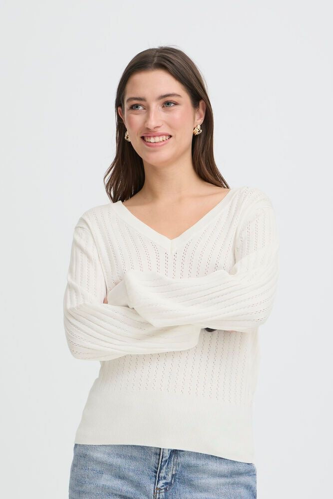 Virkelig blød smuk strik med V-udskæring og let baggy model som er kort i længden og bred rib